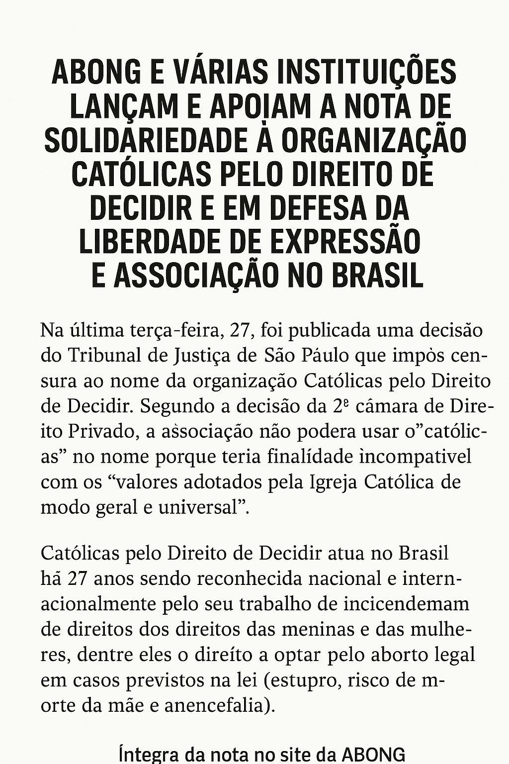 ABONG e várias instituições lançam e apoiam a Nota de solidariedade à organização […]