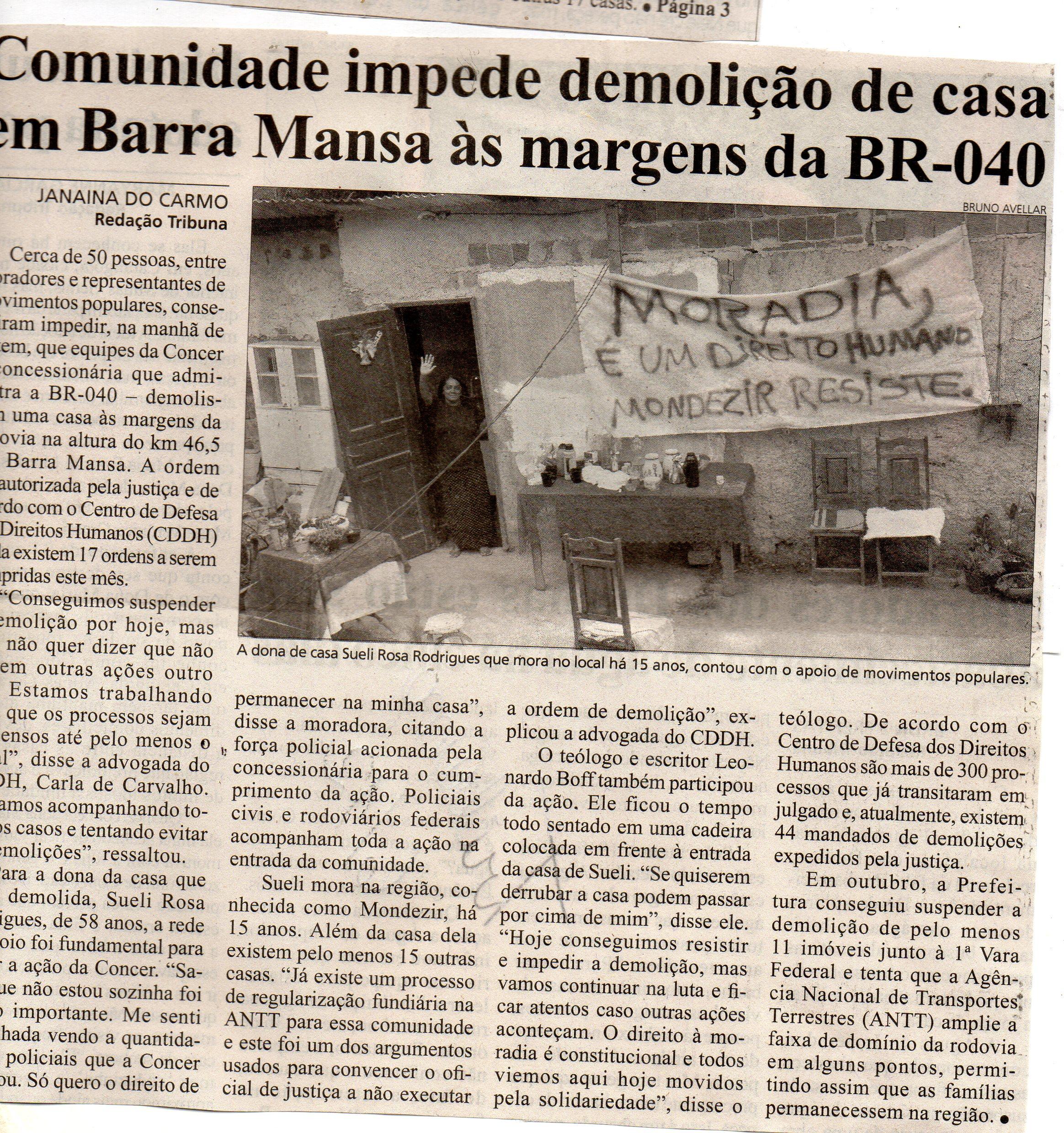 Concer entrega novas notificações a moradores da BR-040 sobre demolições