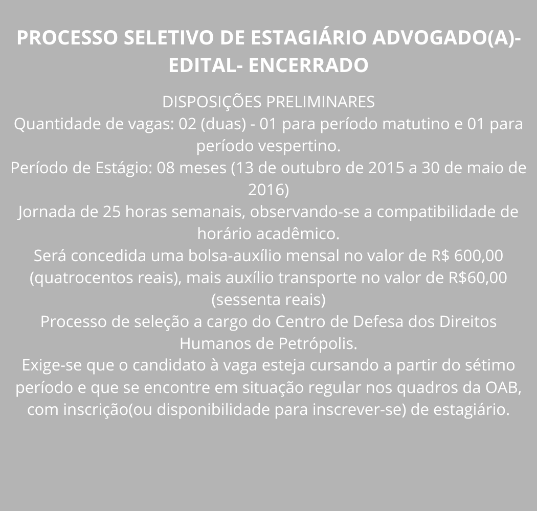 PROCESSO SELETIVO DE ESTAGIÁRIO O CENTRO DE DEFESA DE DIREITOS HUMANOS DE PETRÓPOLIS – […]