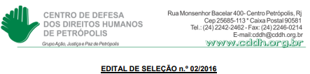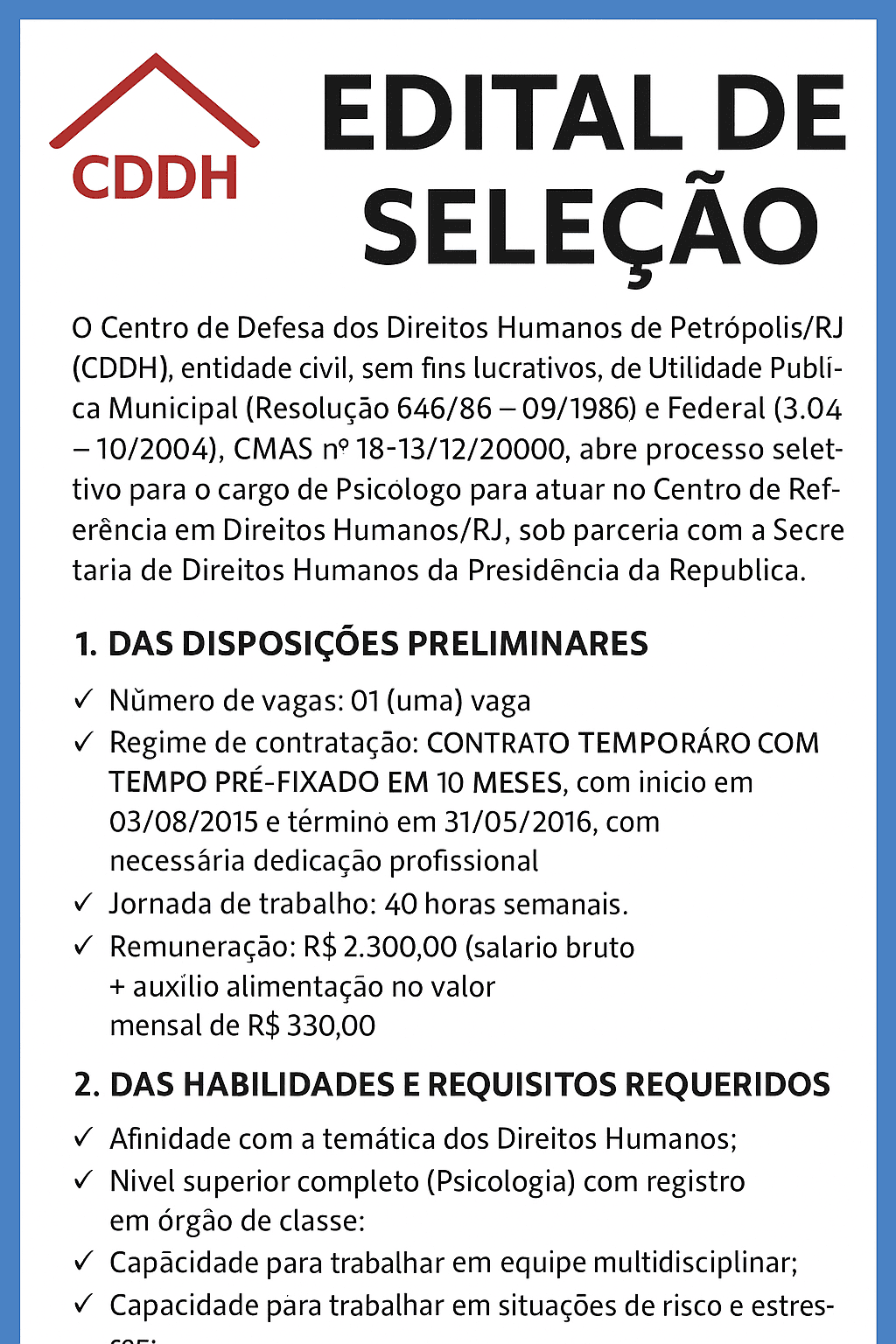 Edital de Seleção – Psicólogo- Projeto CRDH-RJ/ 2015 (FINALIZADO)
