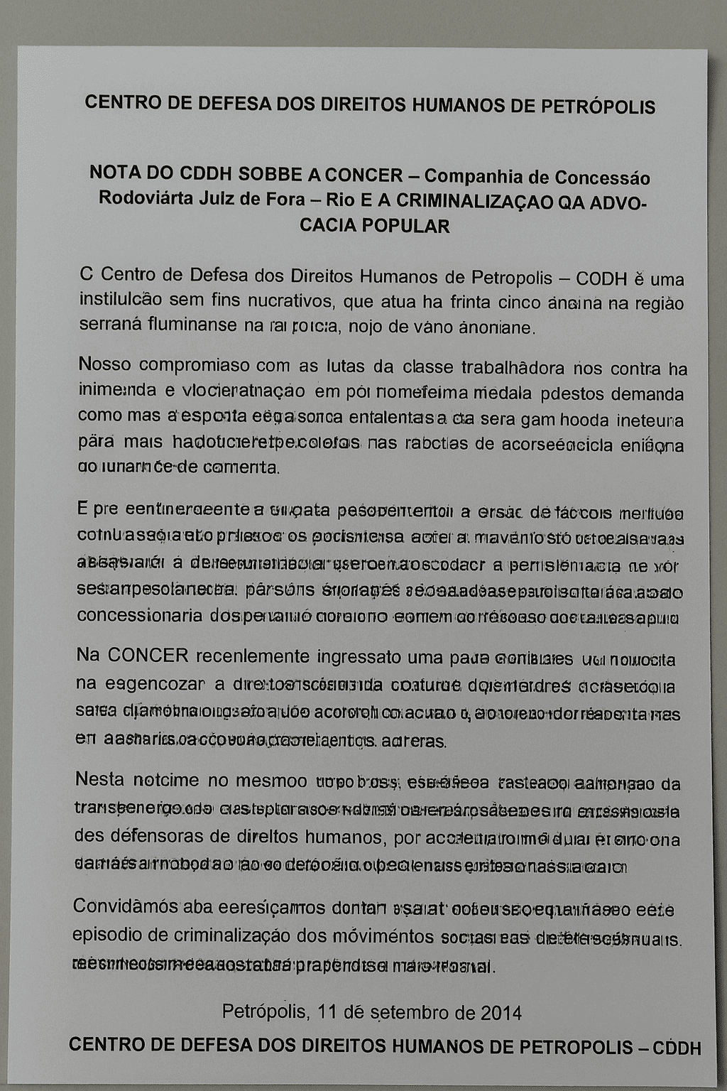 O Centro de Defesa dos Direitos Humanos de Petrópolis (CDDH) divulgou ontem (18/09) uma nota a respeito da criminalização dos movimentos sociais e dos defensores dos direitos humanos, denunciando em especial, a atuação da CONCER – Companhia de Concessão Rodoviária Juiz de Fora-Rio na região serrana e a recente criminalização das advogadas populares do CDDH, empreendida pela concessionária. A divulgação do documento faz parte de uma série de ações contra a criminalização dos movimentos sociais, realizadas pelo CDDH em setembro deste ano.
