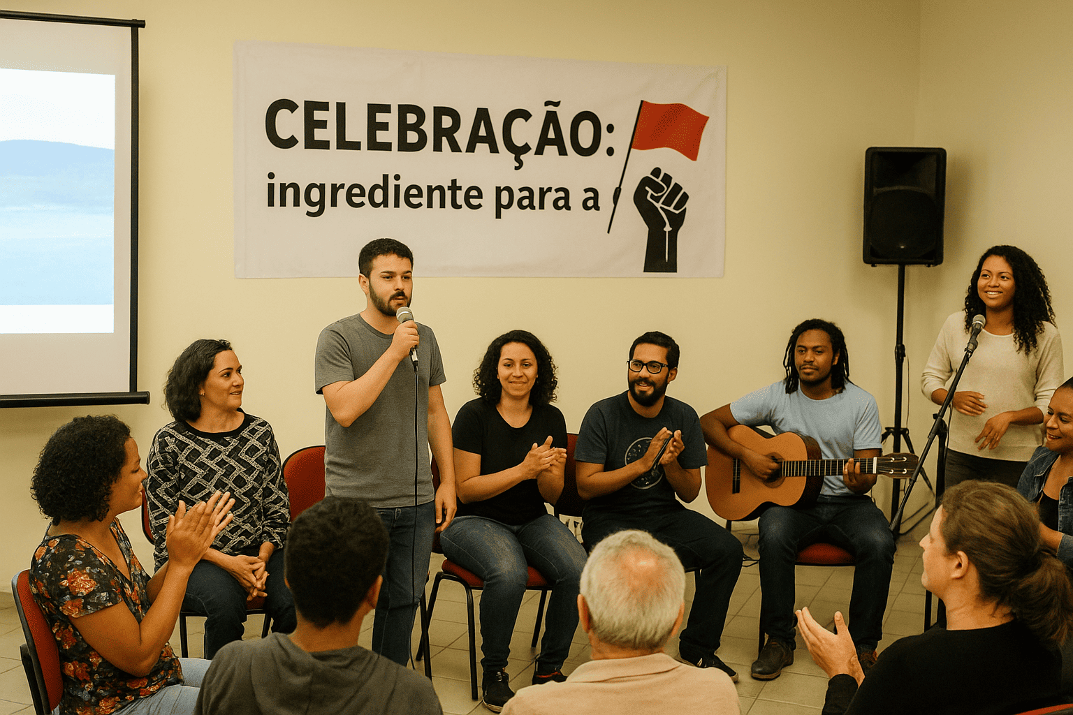 Reunido na sede do Centro de Defesa dos Direitos Humanos de Petrópolis (CDDH) juntamente com outros membros da organização e com diversos familiares, o grupo assistiu ao último filme sobre o projeto criado pelo próprio núcleo de Cinema e Direitos Humanos (Cine&DH) e aplaudiu as apresentações do Coro Nheengarecoporanga e do Núcleo de Musicalização e Funk Handaiuê.