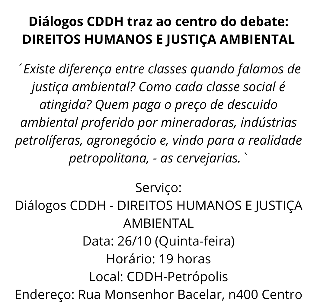 Diálogos CDDH – DIREITOS HUMANOS E JUSTIÇA AMBIENTAL